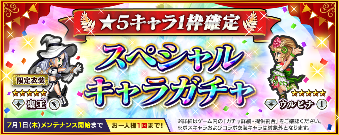 ★5キャラ1枠確定 スペシャルキャラガチャ開始